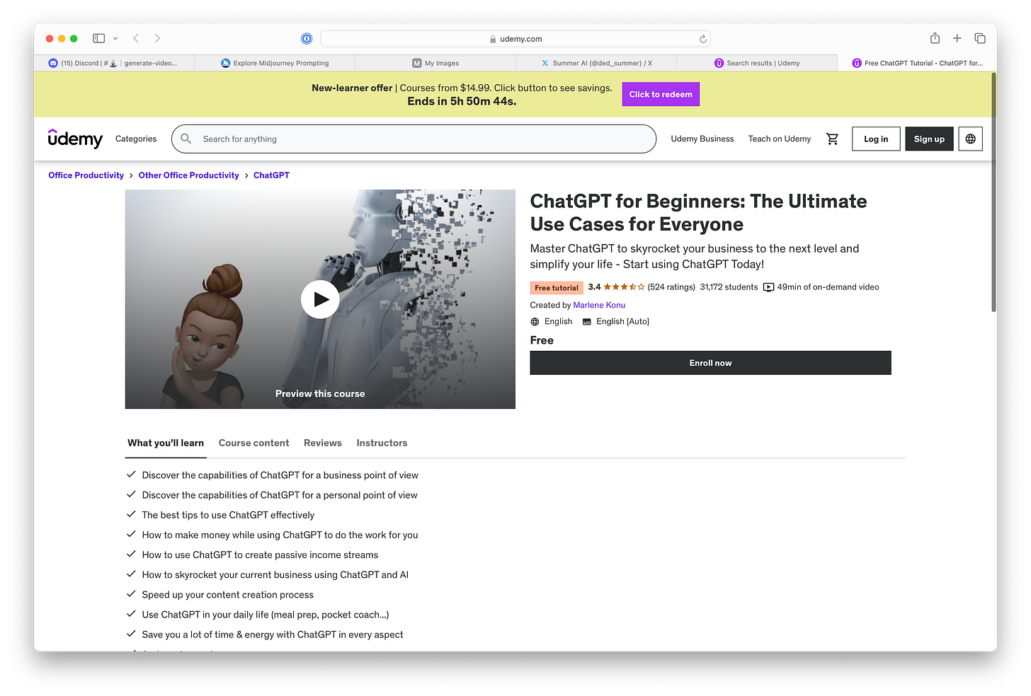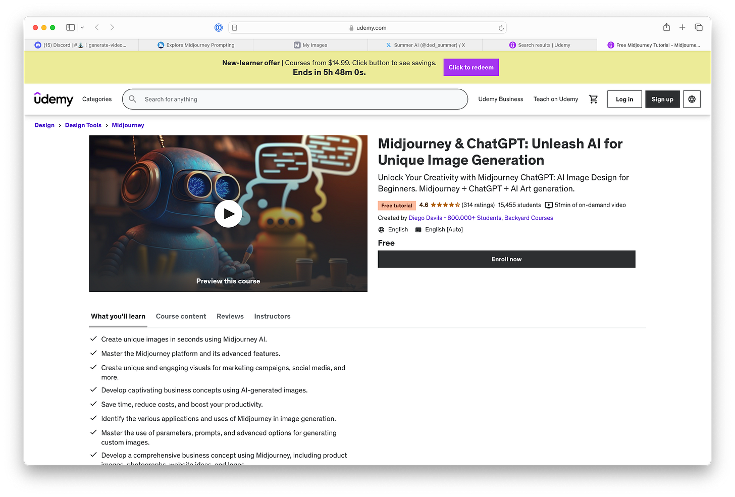 If you’re a designer or want to learn how to use these image-generation services a bit better then this course might be a good start with an appropriate title of “Midjourney & ChatGPT: Unleasing AI for Unique Image Generation.” Here’s the course overview: