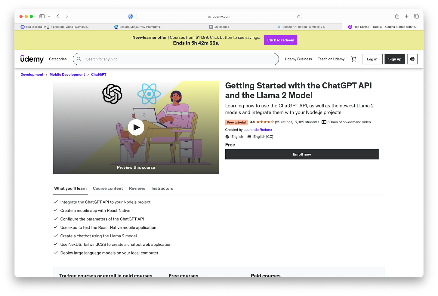 This course is for a bit more technically-inclined and experienced: ChatGPT API and Llama 2 Model for beginners. Here’s the course overview: