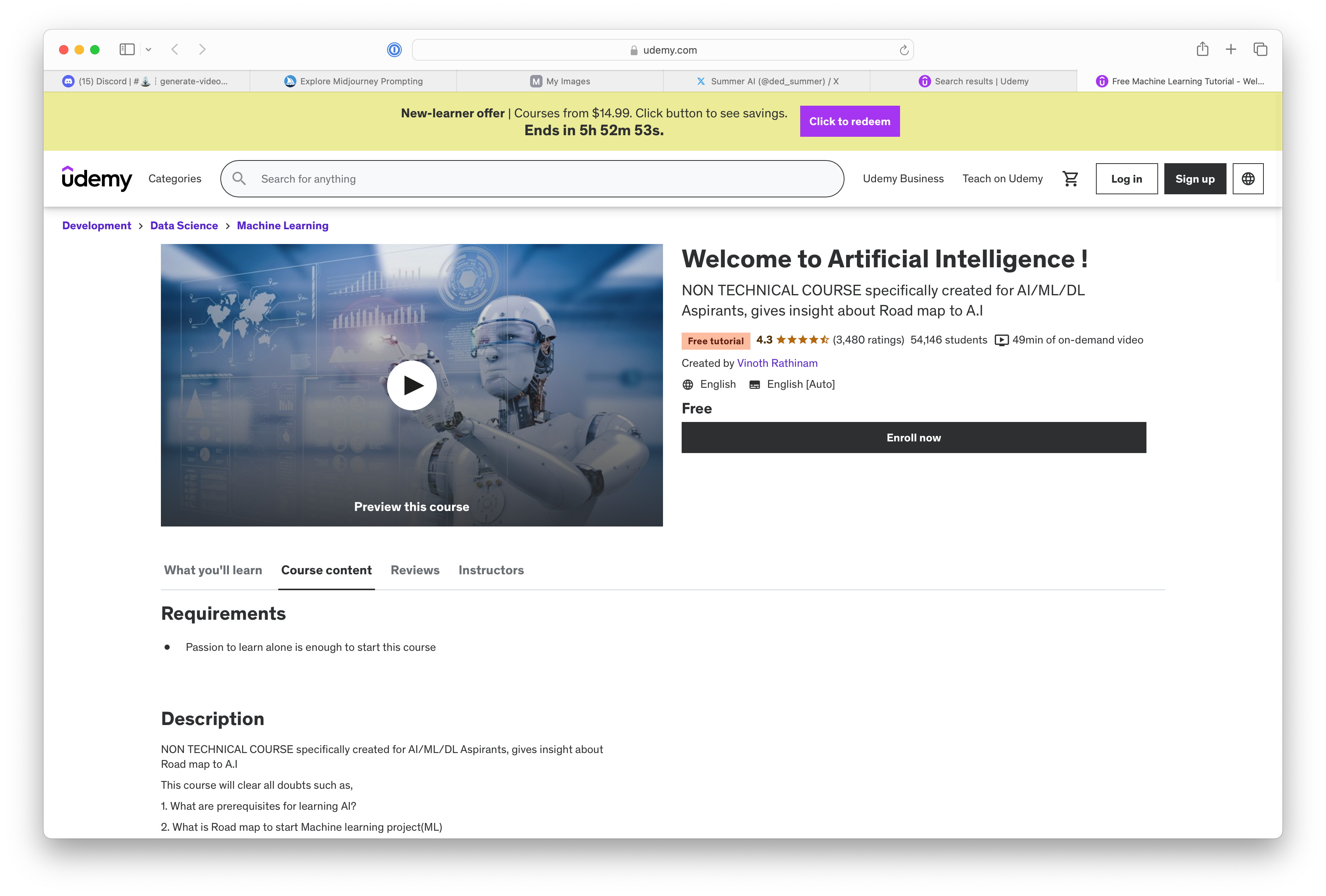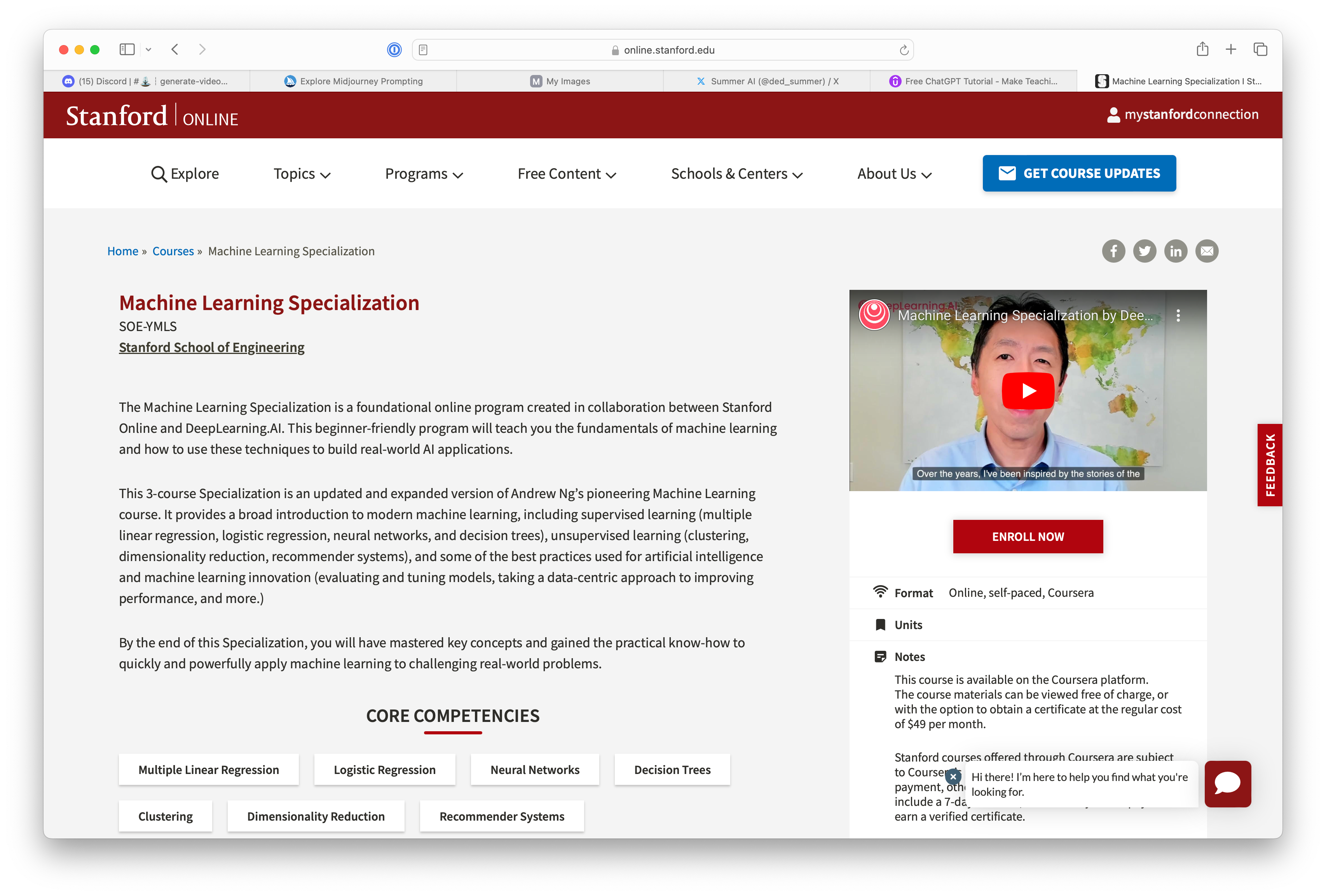 Stanford University has a “Machine Learning Specialization” that is entirely free! Here’s your overview: