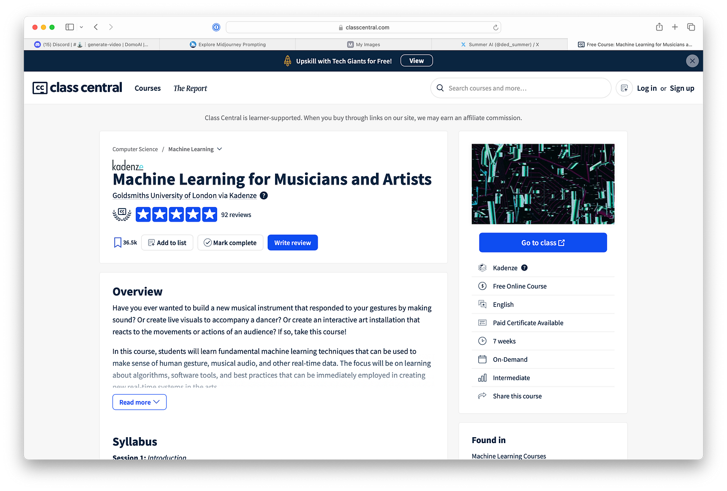 Here’s a slightly different focus: Machine Learning for Musicians and Artists! It’s entirely free, of course: