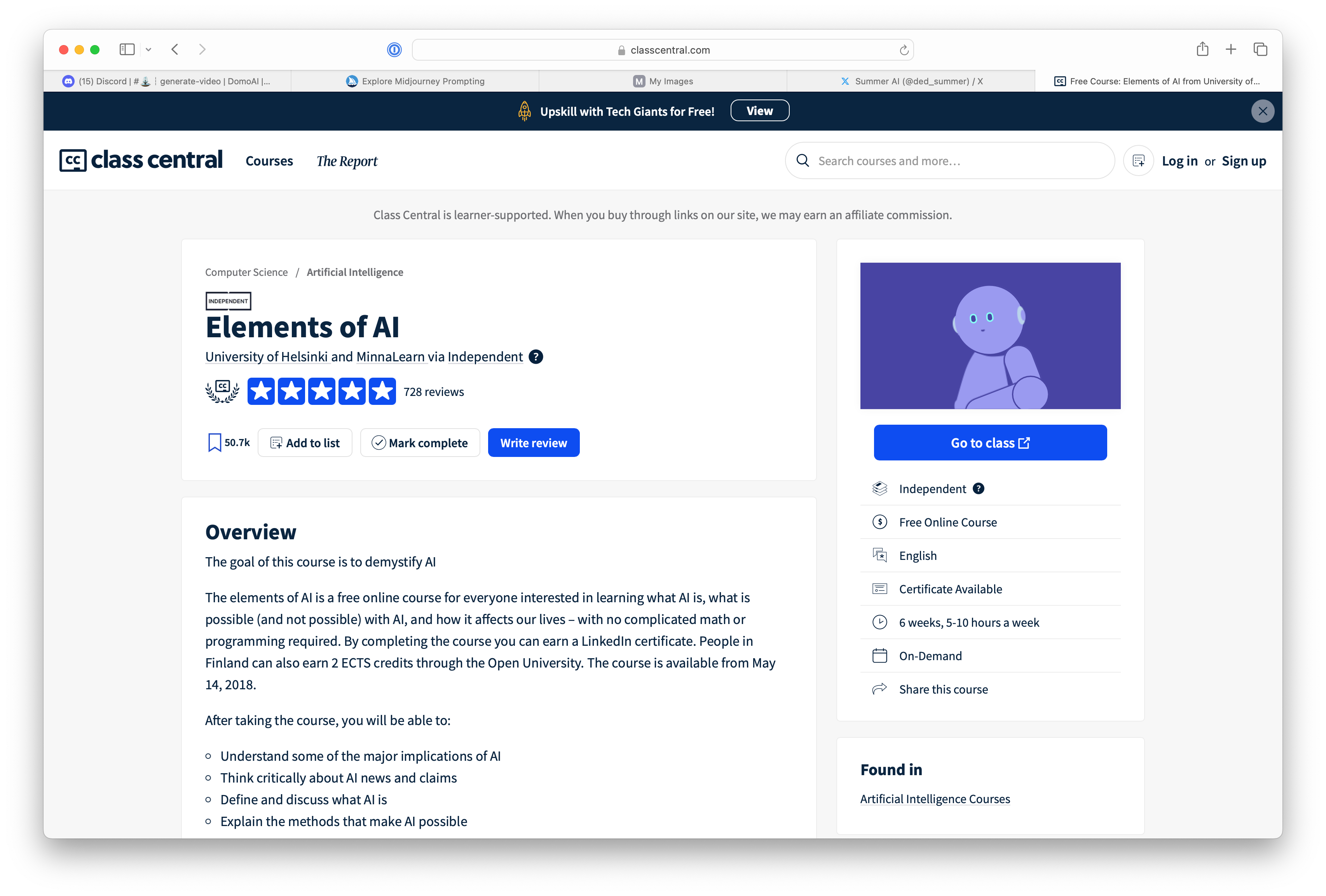 Elements of AI can be learned here and here. What you’ll learn: