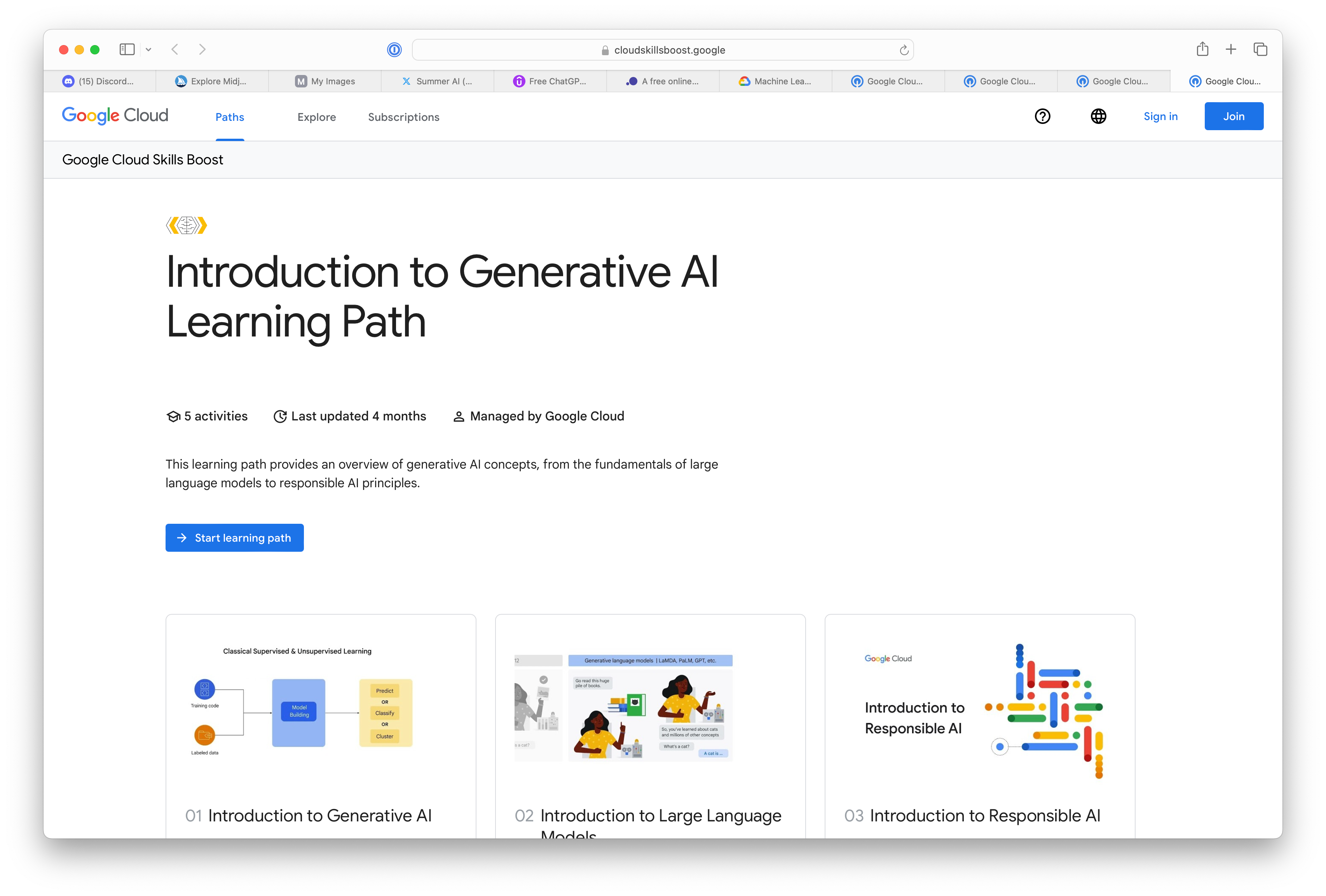Google has a number of free “learning paths” and a handful of them are dedicated to Generative AI, machine learning, and developers.