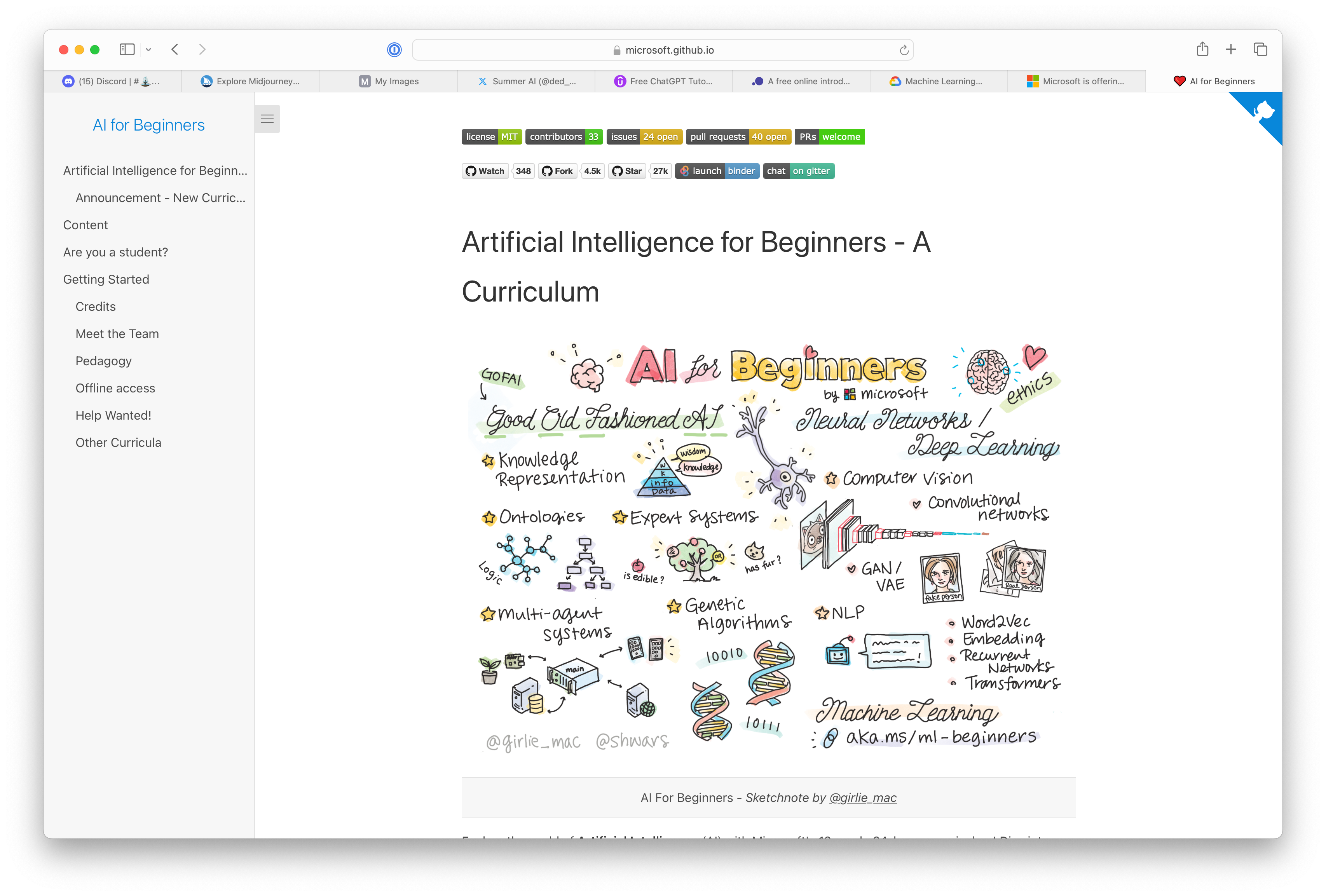 Explore the world of Artificial Intelligence (AI) with Microsoft's 12-week, 24-lesson curriculum! Dive into Symbolic AI, Neural Networks, Computer Vision, Natural Language Processing, and more. Hands-on lessons, quizzes, and labs enhance your learning. Perfect for beginners, this comprehensive guide, designed by experts, covers TensorFlow, PyTorch, and ethical AI principles.