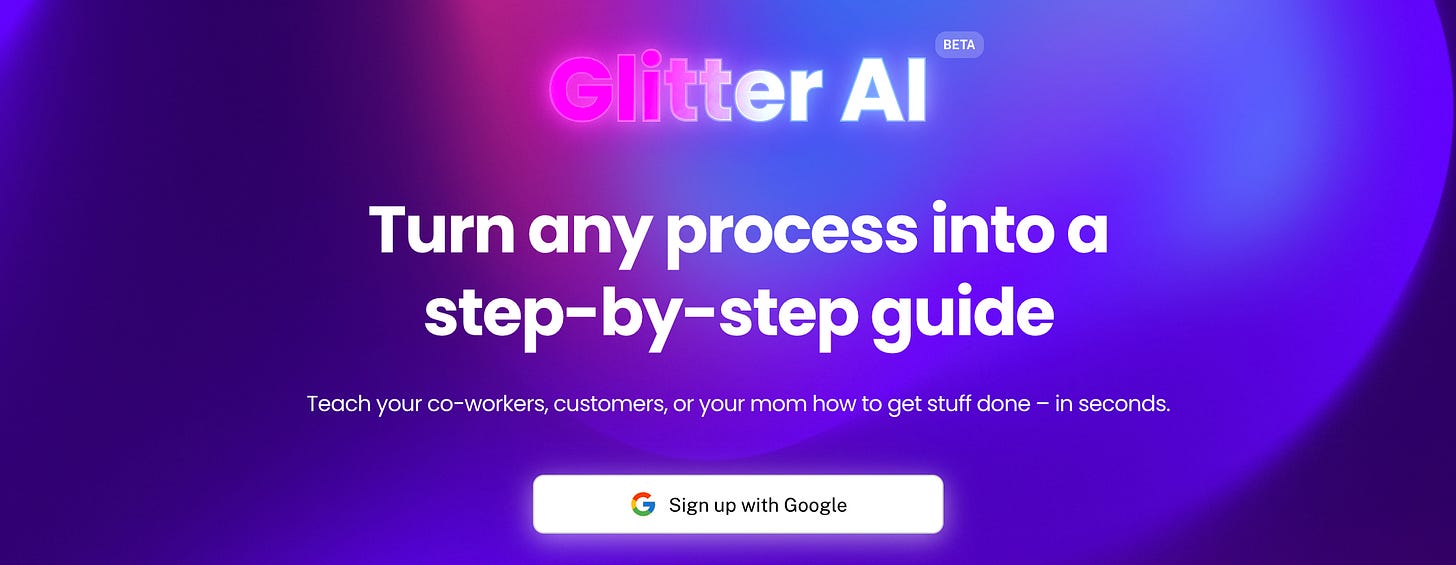 Glitter AI helps you create step-by-step guides by just talking. That’s it.