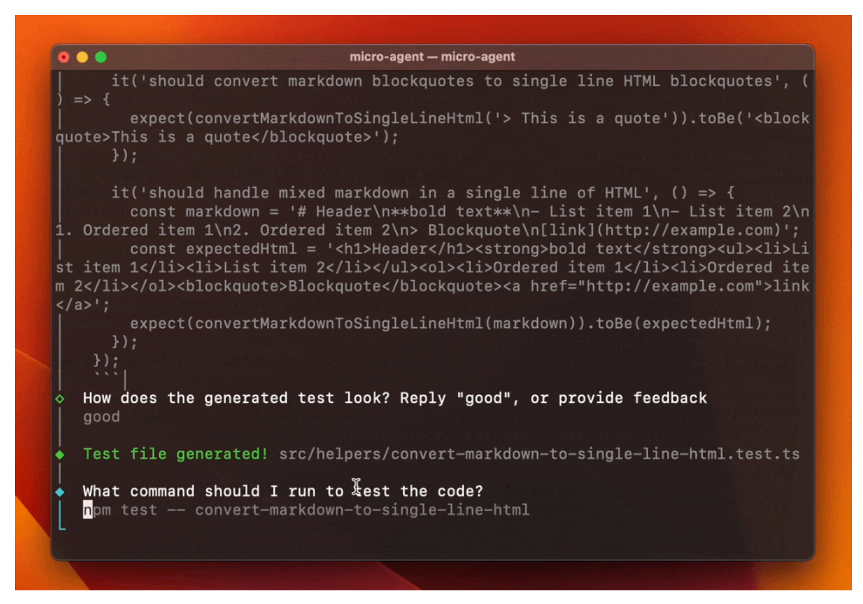 Microagent is an AI *gasp* agent that writes and fixes code for you.