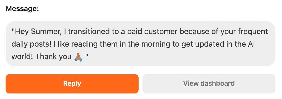 And a shoutout to Geo, one of our community members, for supporting the cause! I’m so grateful folks are finding value in these daily issues! I started this out as an experiment earlier this year and we’ve built a small and committed community of readers. It’s honestly more than I had hoped!