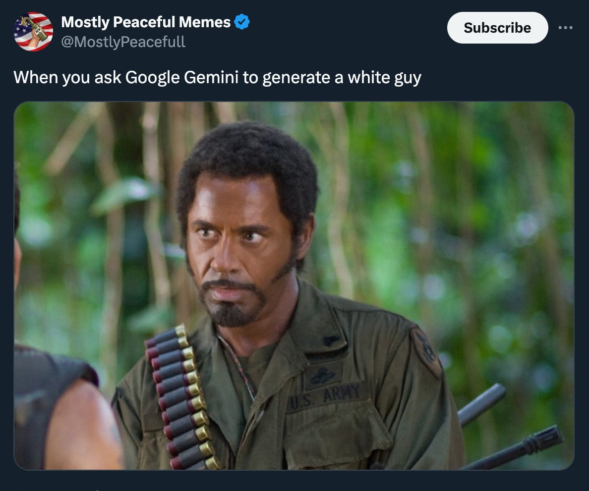 Most recently I’ve been enthralled by some of the hilarious if not completely sad results of Google’s efforts to promote it’s new generative AI tool Gemini that has produced shockingly-bad and biased results, the more obvious ones being unable to produce results showing white people.