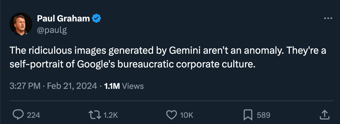 The ridiculous images generated by Gemeni aren’t an anomaly. They’re a self-portrait of Google’s bureaucratic corporate culture.