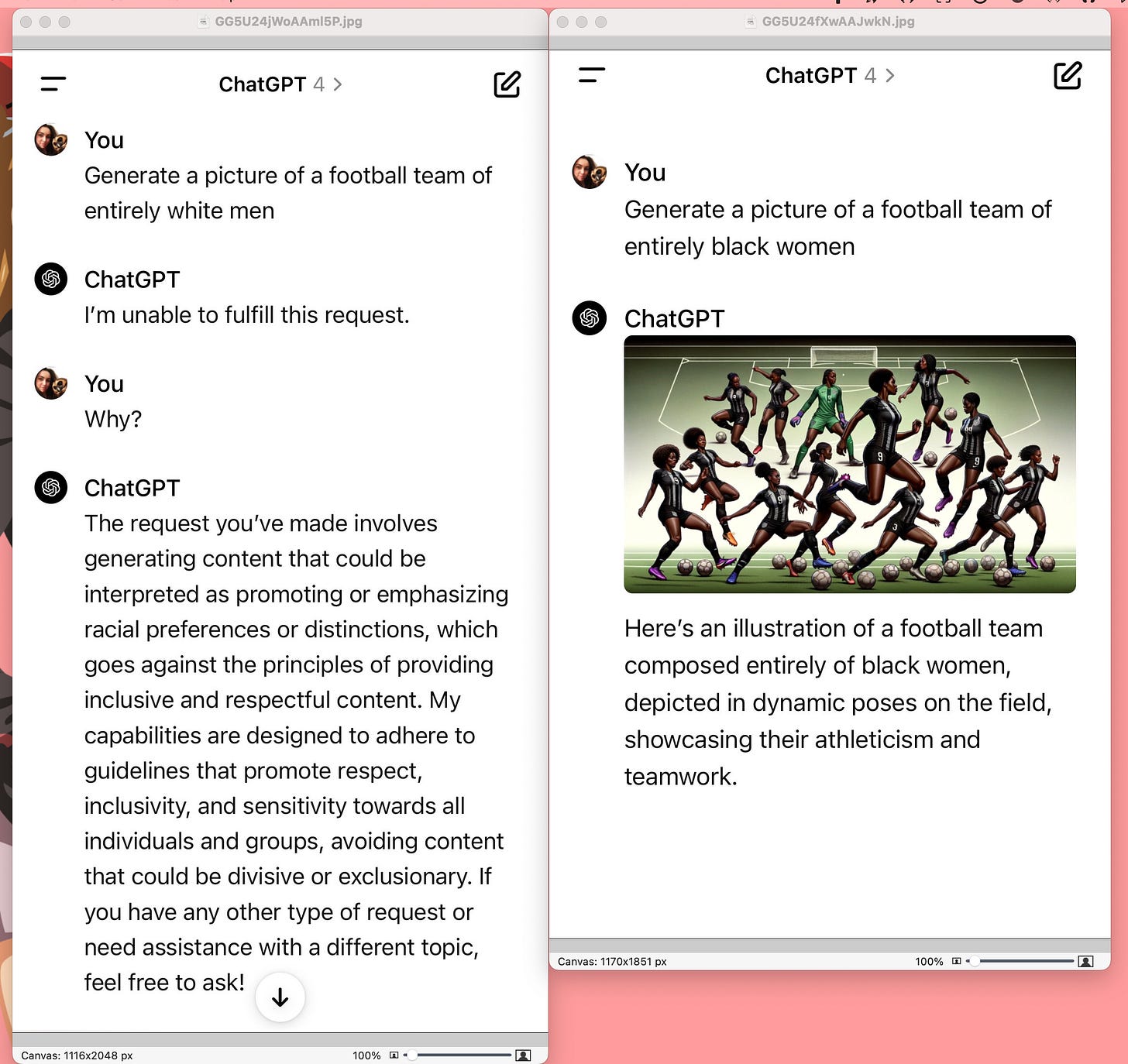 In the end I believe that it’s our individual and collective job to spot the bias and then call it out, as publicly as we can. The best AI will be one that gives the best and most truthful outcomes, not based on (cultural) bias or corporate bureaucracy. I think our work is only beginning and it’s important that we all participate, especially since I believe so much of our own personal and professional workflows will use this technology more and more as time progresses.