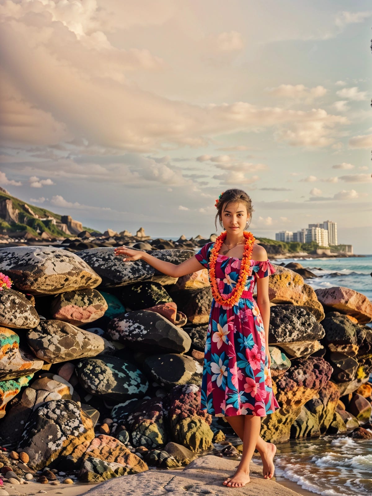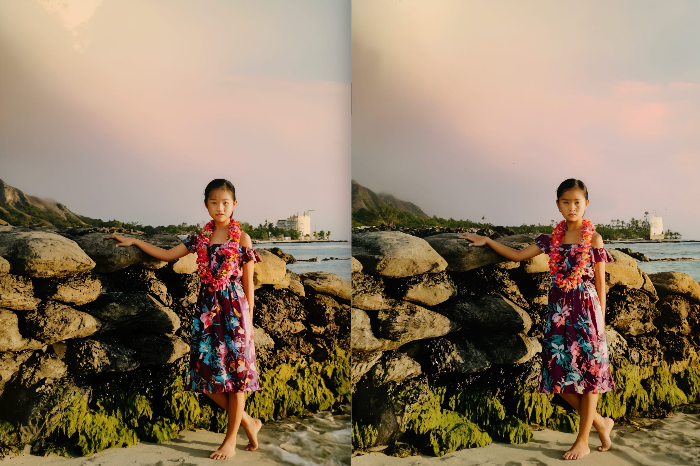 So I gave Nex.art a try and uploaded a very old image of myself (~10 years old) along the shoreline in which I’m wearing a lei and one of my favorite dresses at the time.