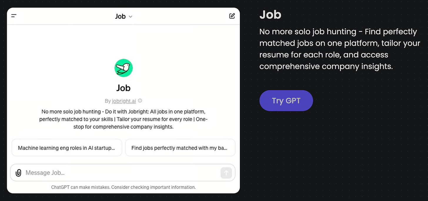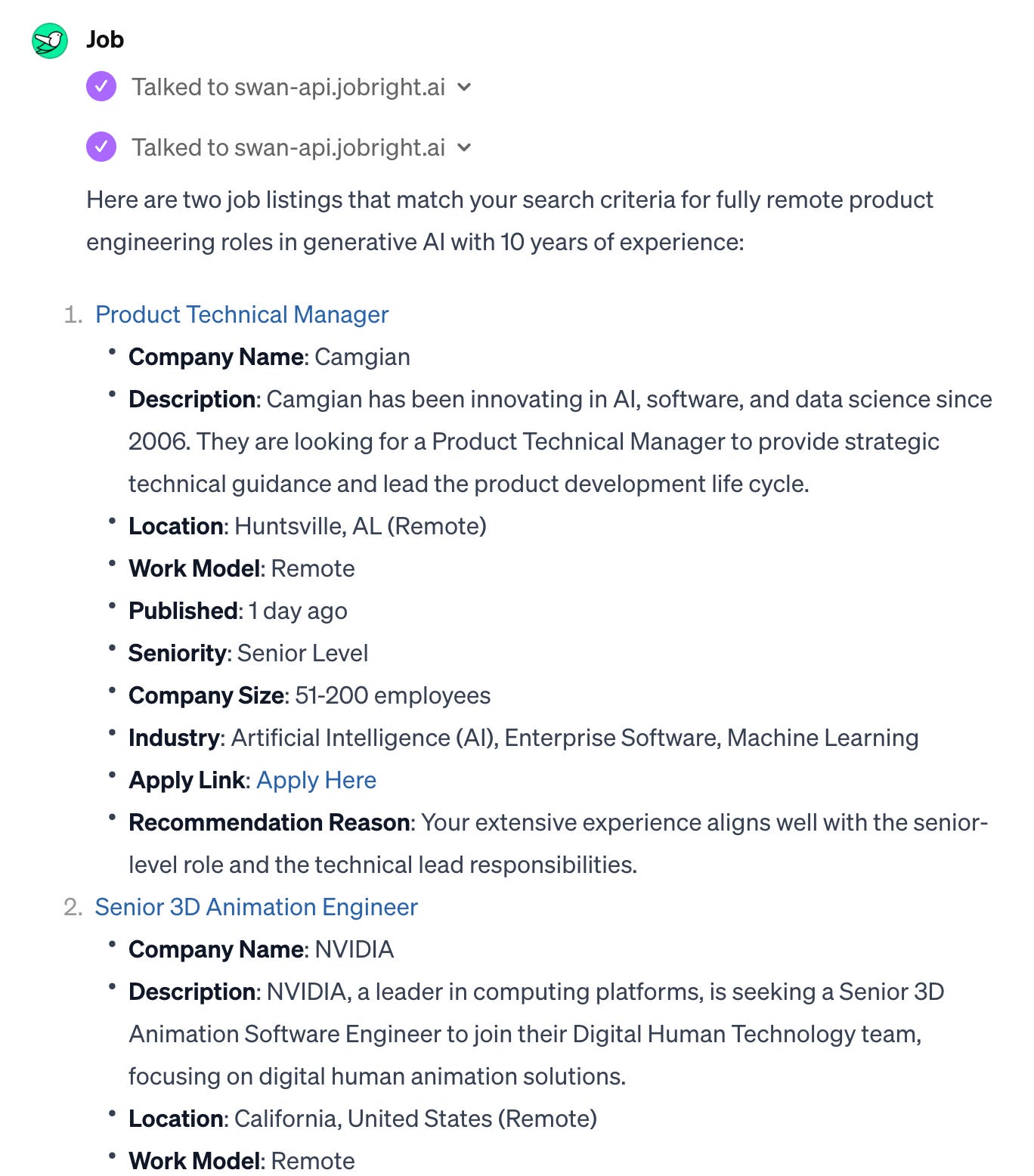 I test-drove a GPT that allowed you to chat about jobs that you wanted to find and it’s precisely what you think it is. I asked it to find “product engineering” roles and gave it more details such as the fact that I wanted it to be a completely “remote” opportunity. The chatbot can continue to refine results if you wish.