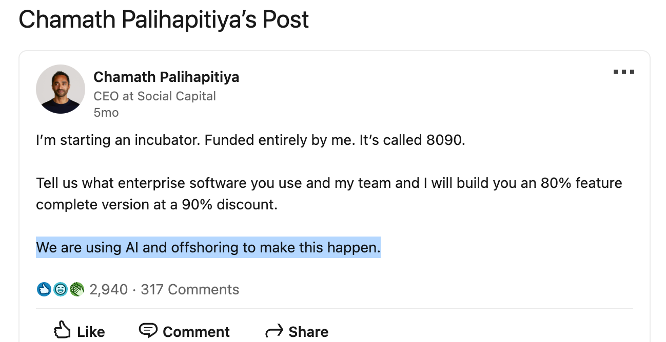 Artificial intelligence is keeping the VC ecosystem afloat. It accounted for more than 40% of new private U.S. "unicorns" in the first half this year, and over 60% of the increase in total venture-backed valuation, per PitchBook.