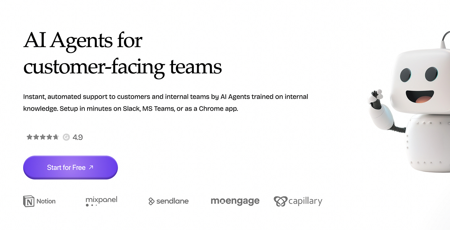 Instantly provide automated support to customers and internal teams with AI agents trained on internal knowledge. Set up effortlessly on popular collaboration platforms.