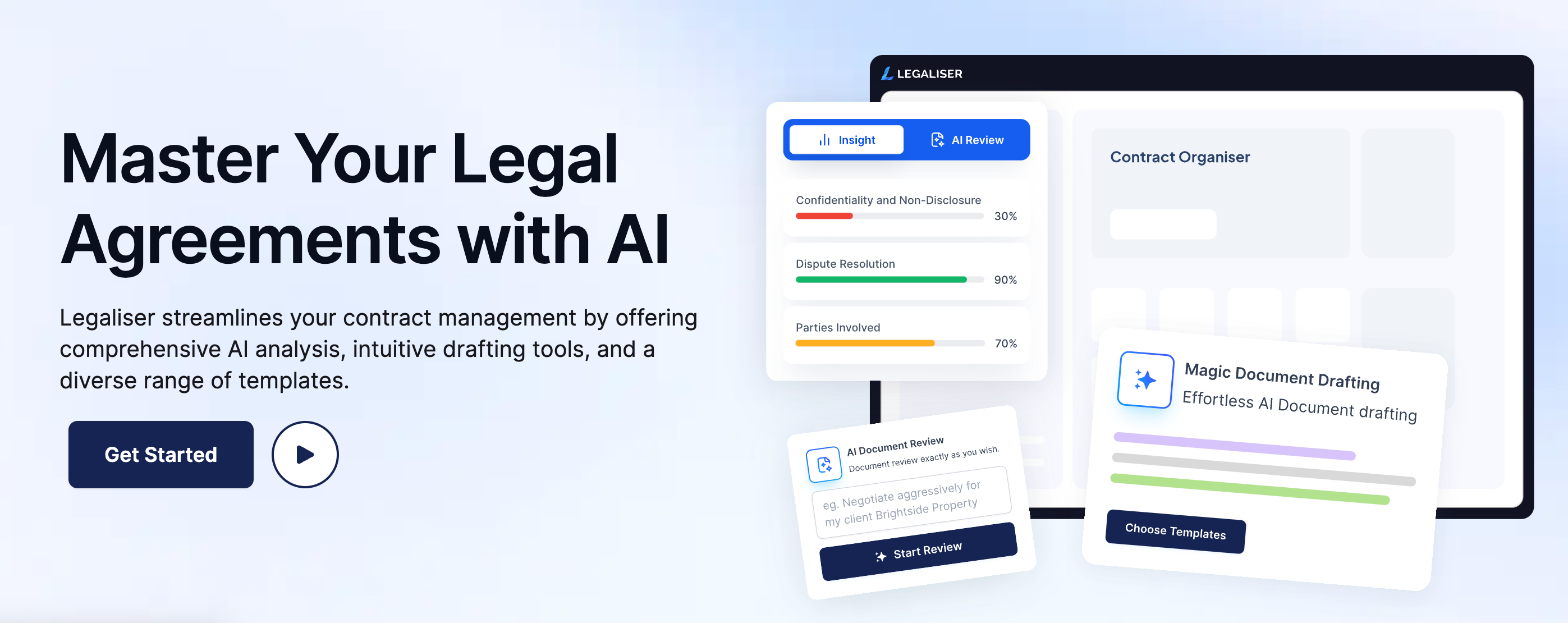 Legaliser utilizes AI technology to simplify contract analysis, drafting, insights, and reporting. Create legally compliant contracts effortlessly and efficiently.