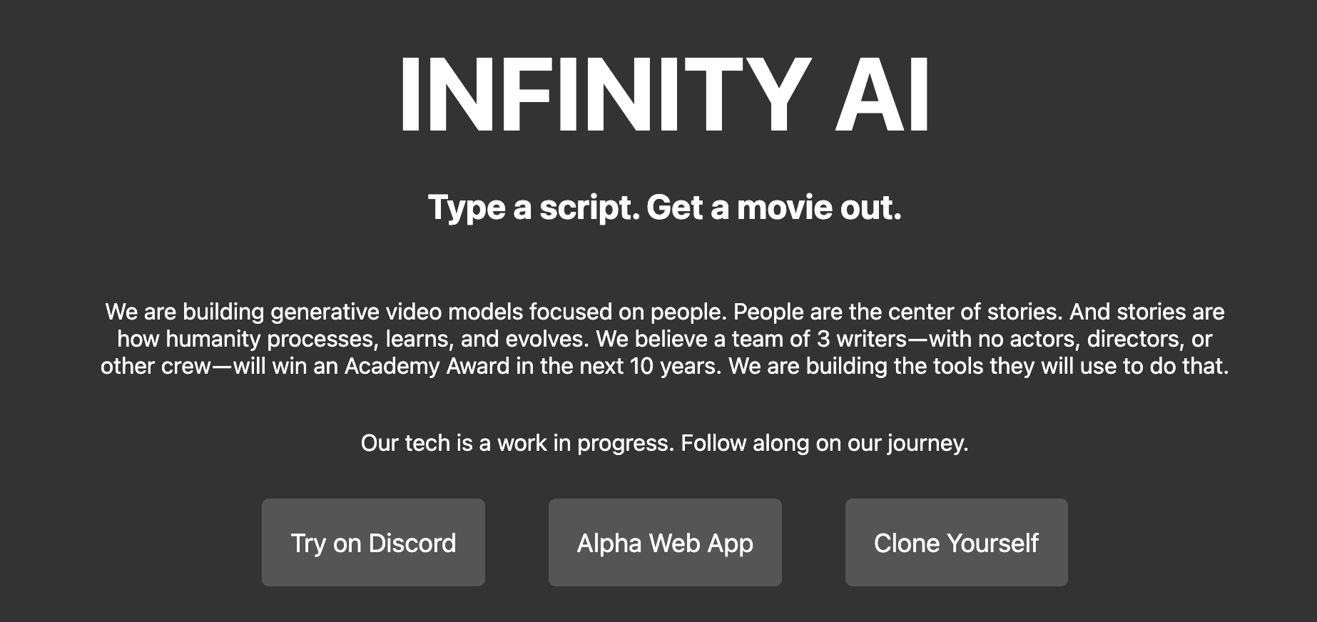 Infinity AI says that they can generate an entire movie from a script. Impressive but I wonder how deep and how big those scripts really need to be.