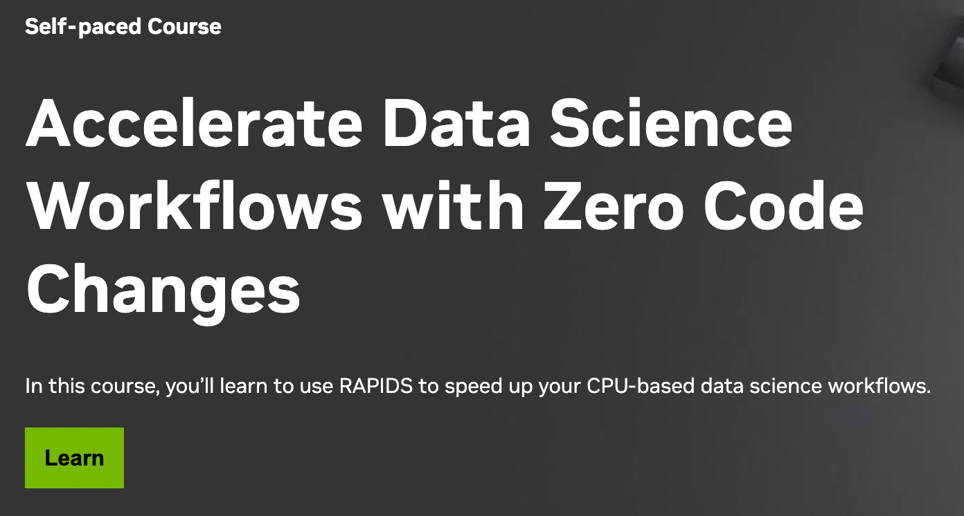 In this course you’ll learn how to use RAPIDS to speed up your CPU-based data science workflows.