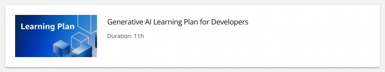 Generative AI Learning Plan for Developers via Amazon. Get an introduction to GenAI, plan a project, prompt engineering, and more.