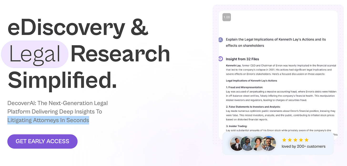 Decover is a legal research assistant. There' are a lot of these coming into play now.