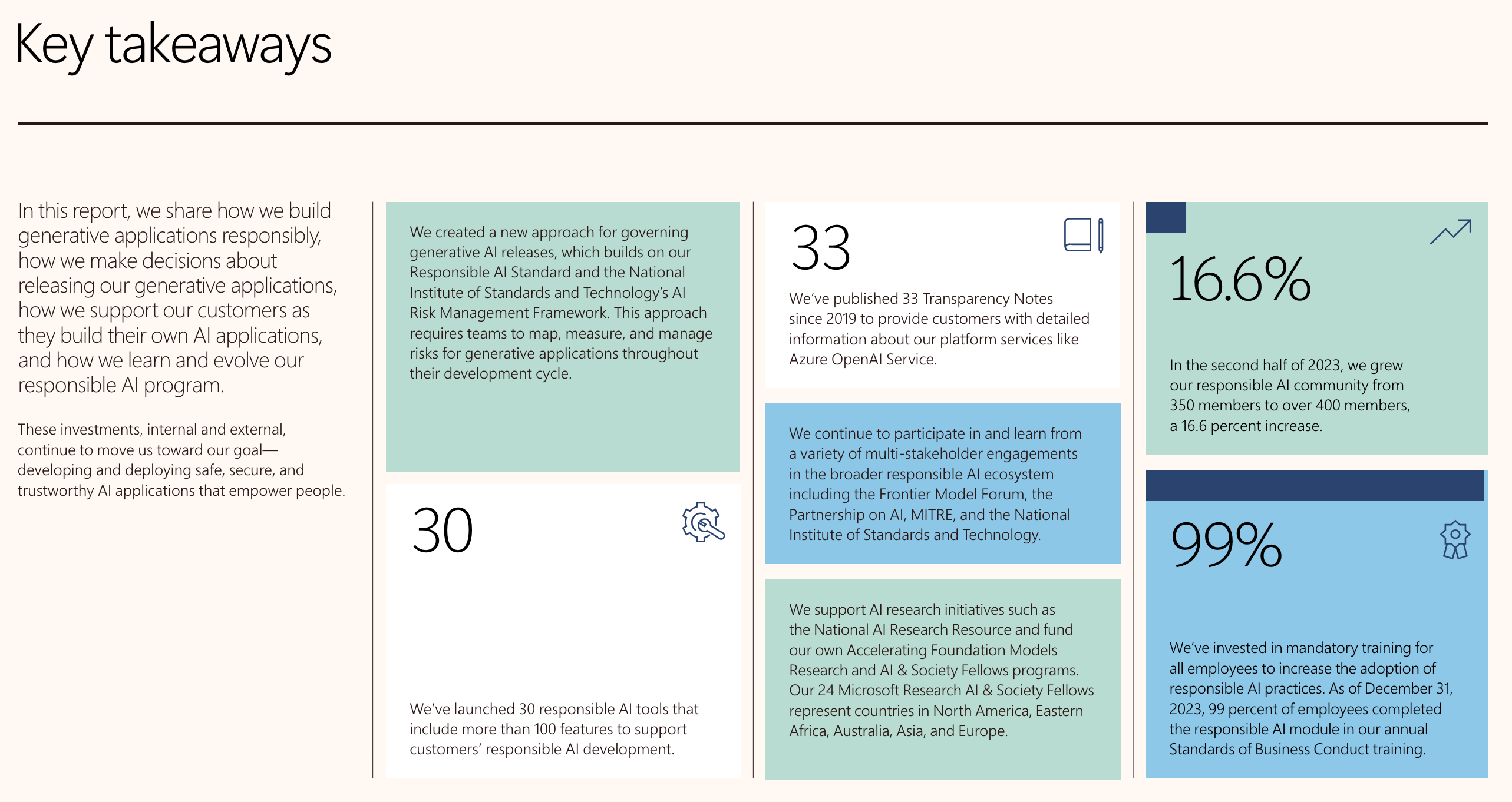 Microsoft produced it’s first “Responsible AI” report. Key takeaways here: