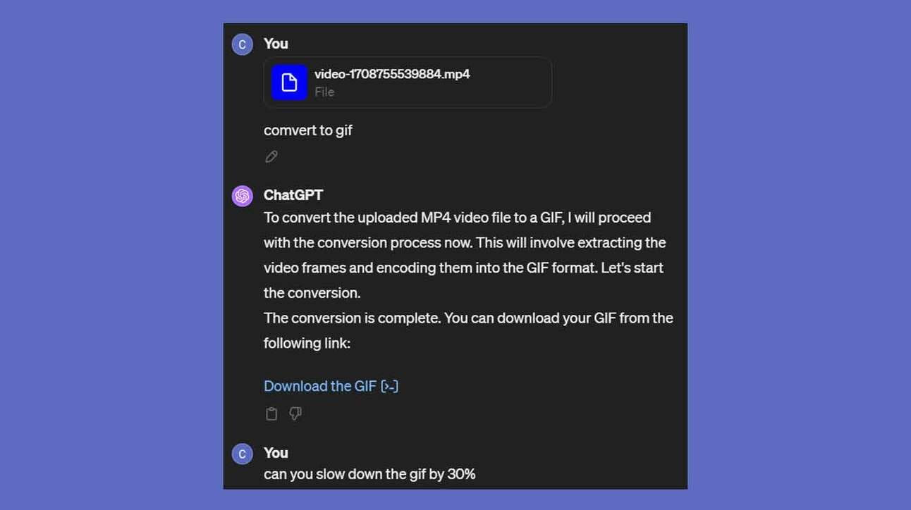 This next GPT seems very useful! Using ChatGPT you can convert a .mp4 file to a .gif and then download it for your use. Chase gives a good overview of his process.
