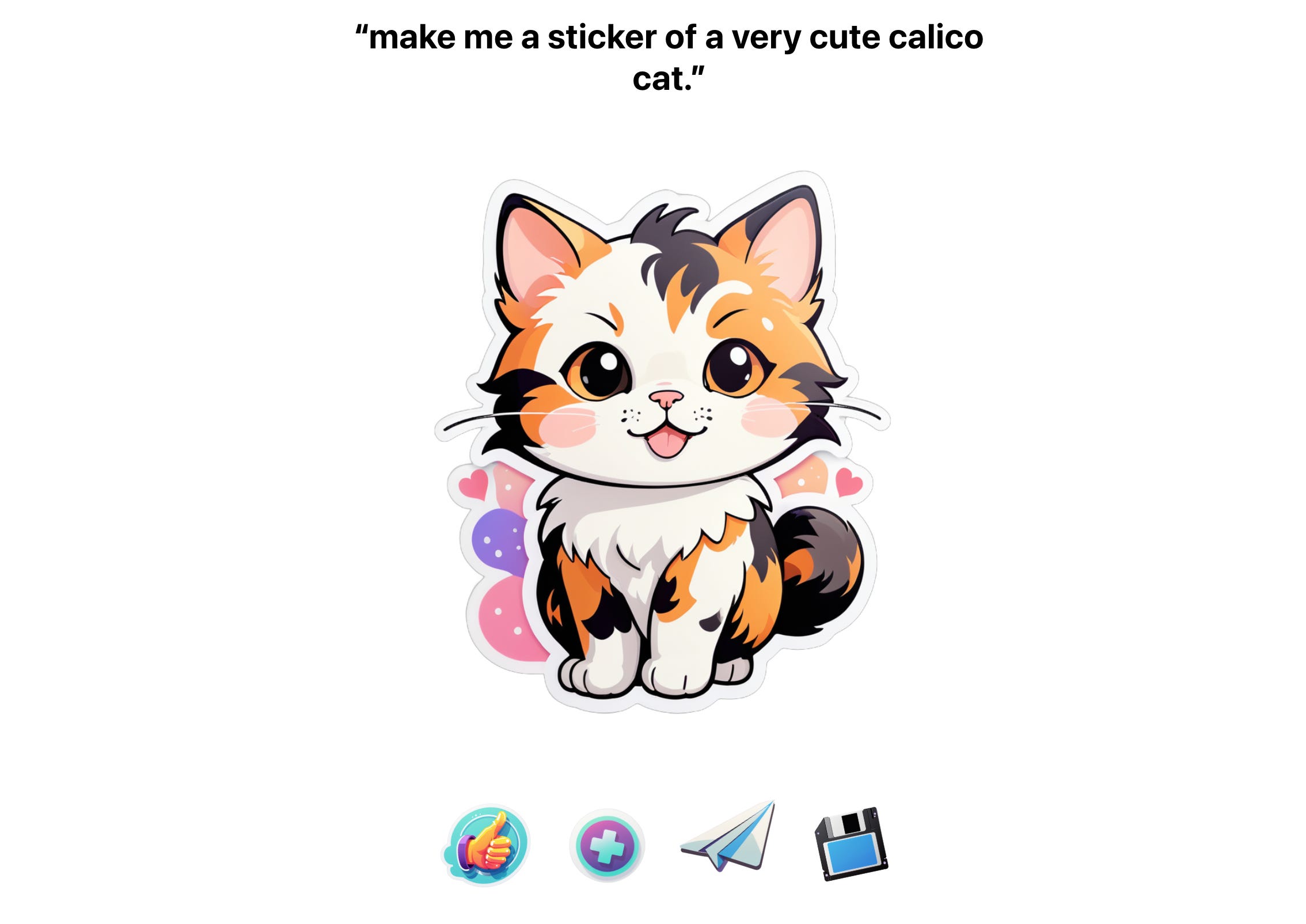 If I ever needed to create a unique sticker using generative AI I might have to use StickerBaker, a very simple tool that worked perfectly. Above, I created one for a “calico cat” and voila. Done.