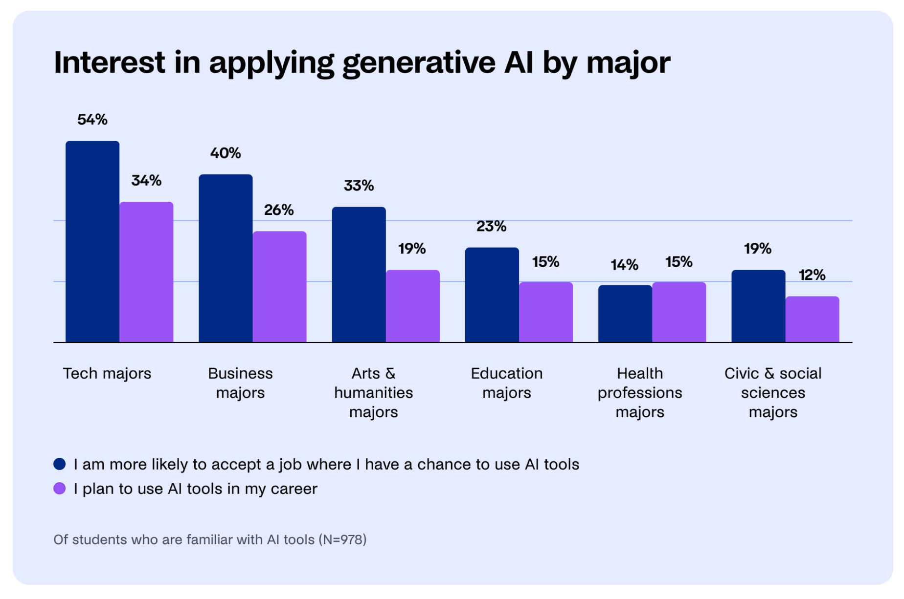 More than one third of seniors (and more than 50% of tech majors) plan on using GenAI in their careers.