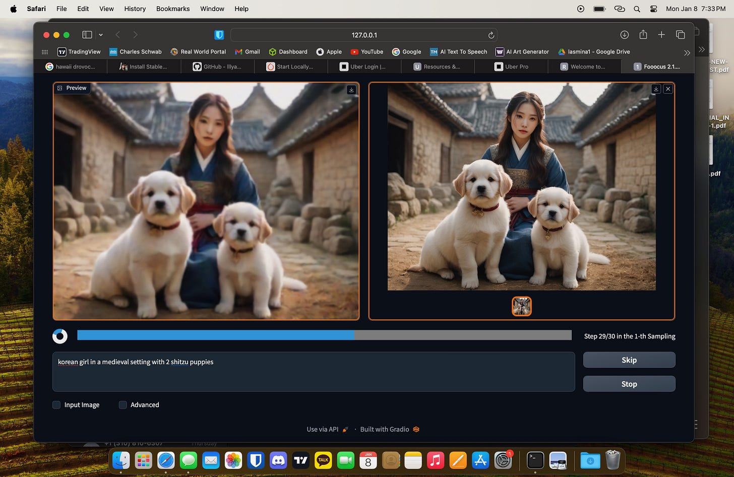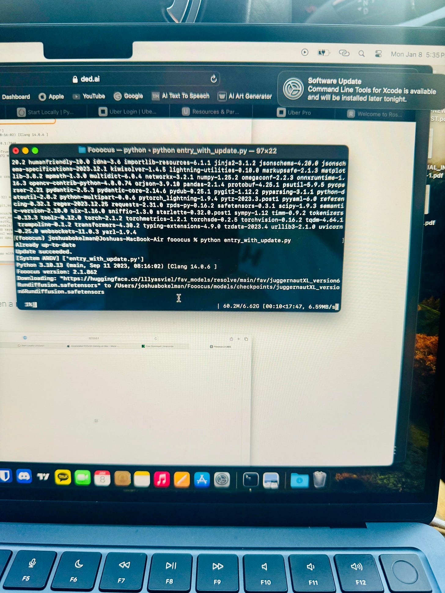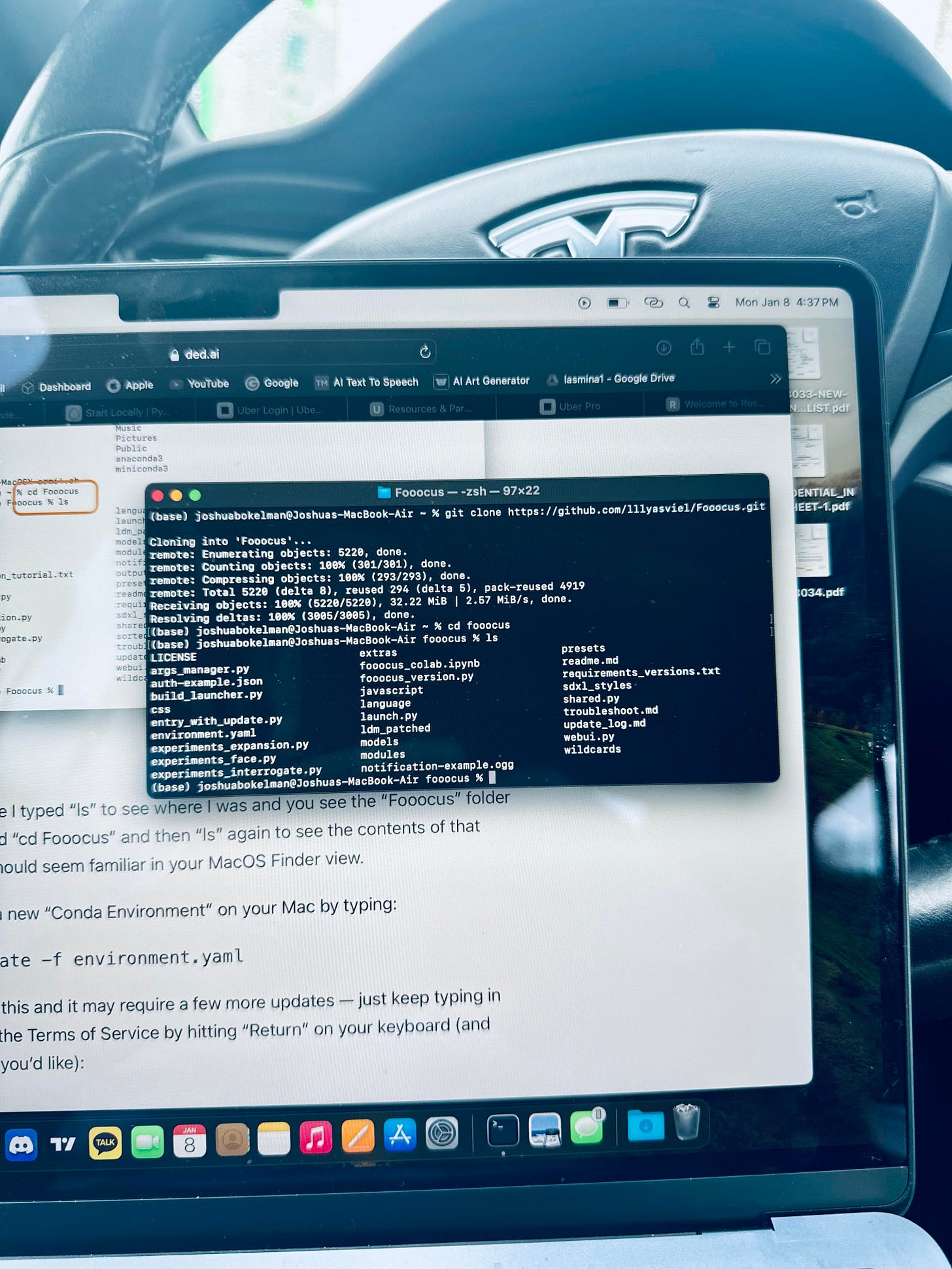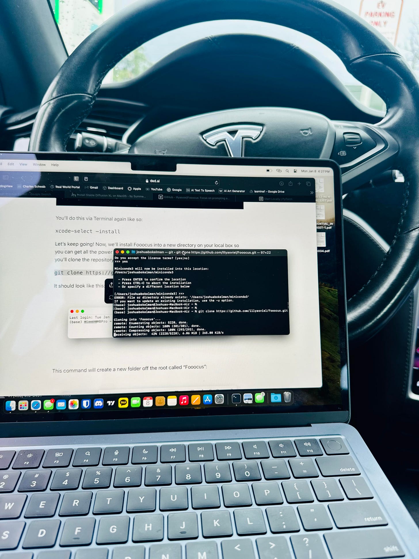 Oh! And finally I was sent some images via one of my readers who successfully installed Stable Diffusion XL on their new Macbook Air while sitting in their Tesla — I love to see others find these posts useful! Here are some pics: