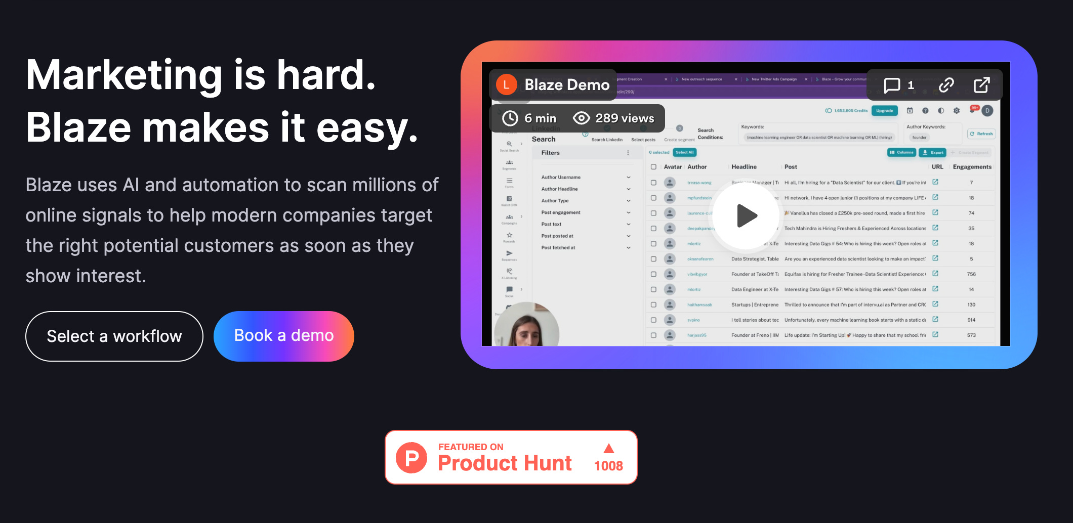 As much as I hate marketing, it’s an important motion for companies to use. Blaze uses AI and automation to scan millions of online signals to help companies connect with customers.