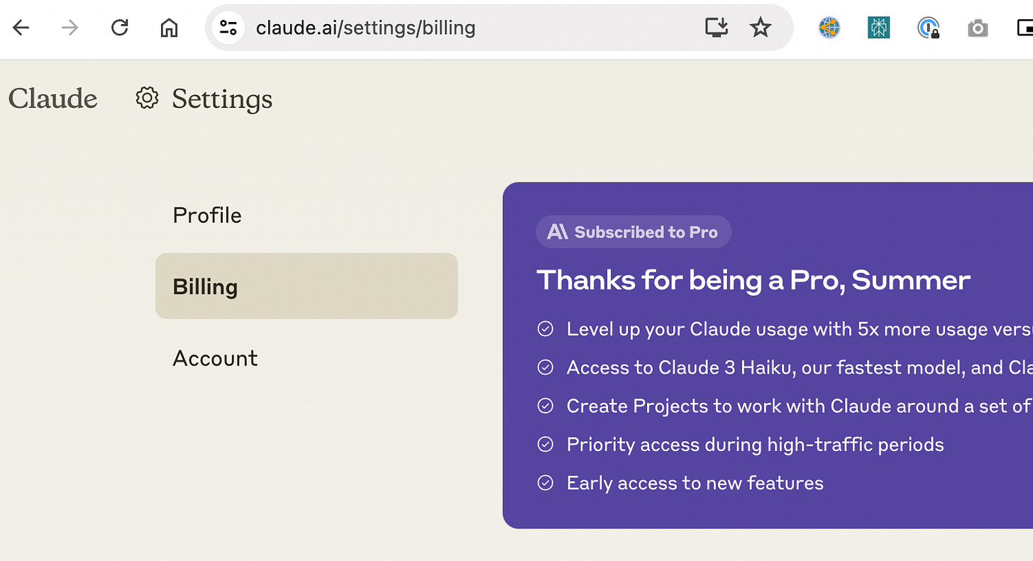 To start, I actually upgraded my Claude account to “Pro” for $20 per month: