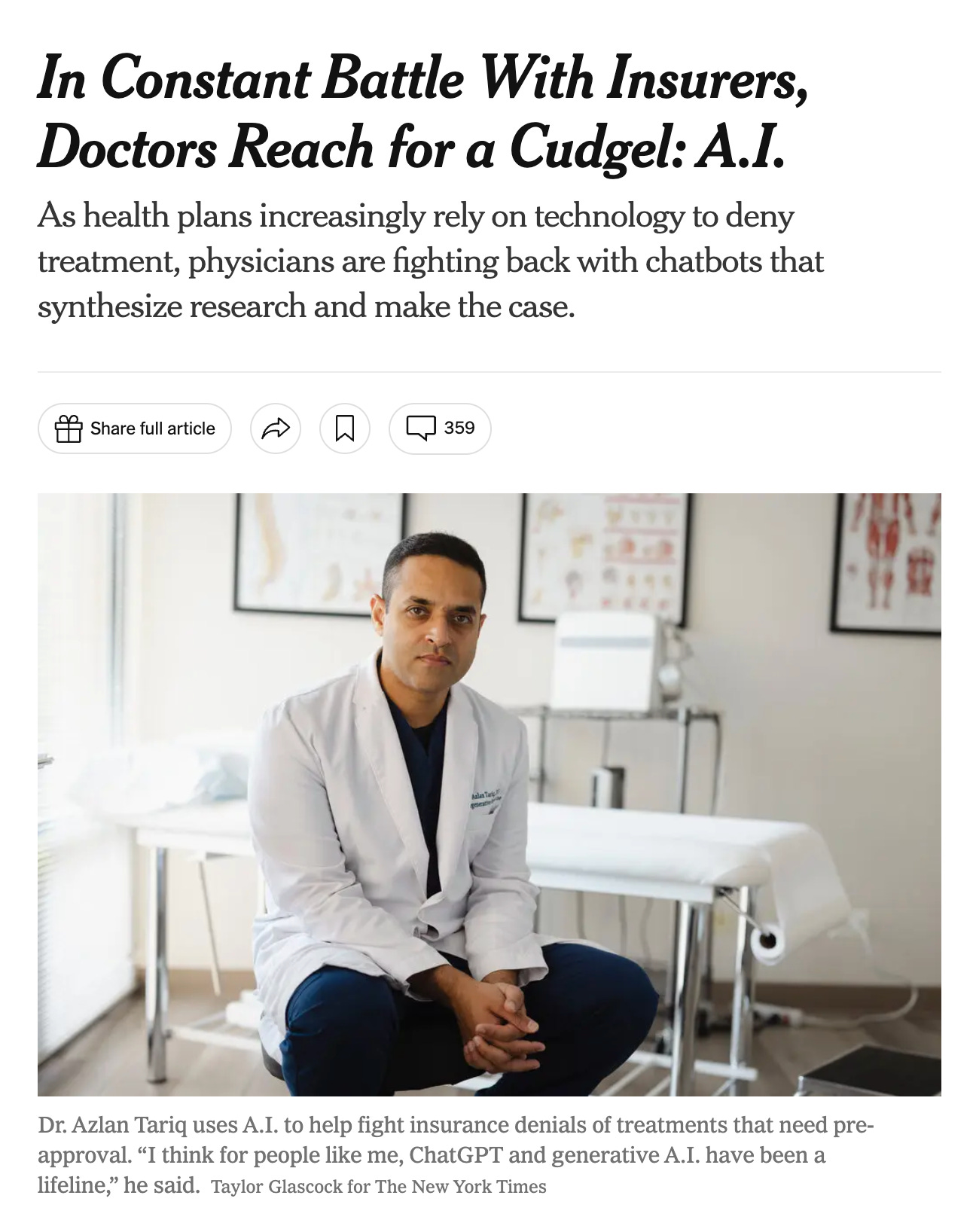 Doctors using AI to help fight insurance denials of treatments is weird, bruh.
