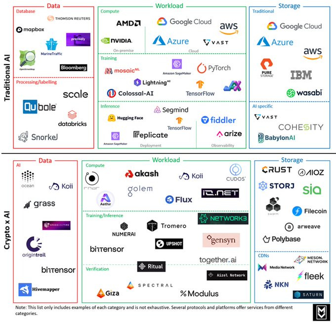 Free report on Crypto and AI. Includes comparisons to traditional companies, market sizing, and emerging projects and details key AI infrastructure components like training data, storage, and workloads. Not terrible.