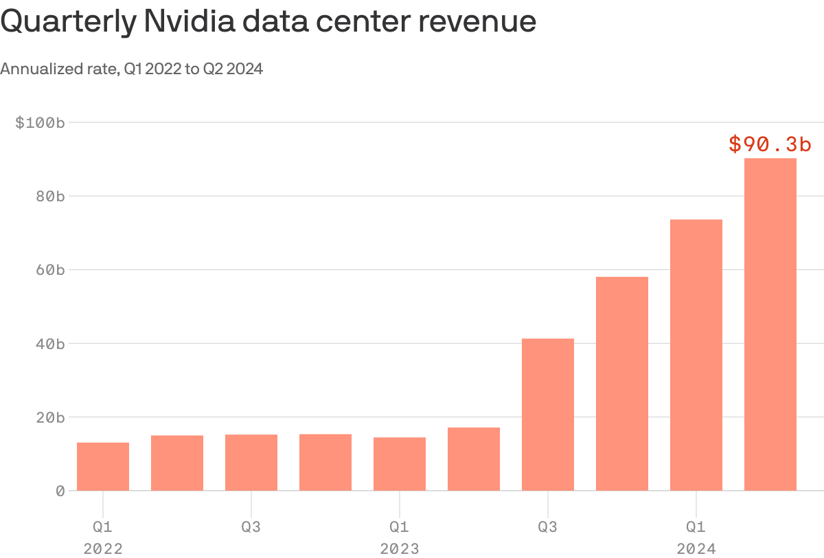 NVIDIA is on a tear and apparently their data centers will be sold at a pace of about $150 billion per year on an annualized basis by the final quarter of 2024, estimates David Cahn of Sequoia Capital. Wow. Wow!