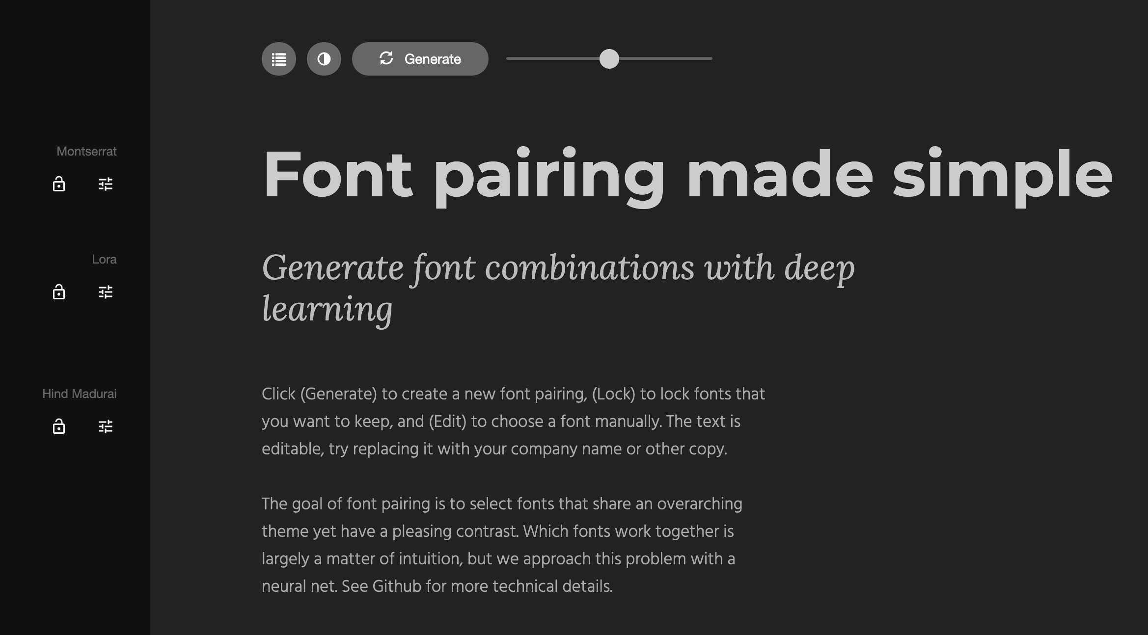 Fontjoy helps designers find perfect font pairings in one click. Very useful.