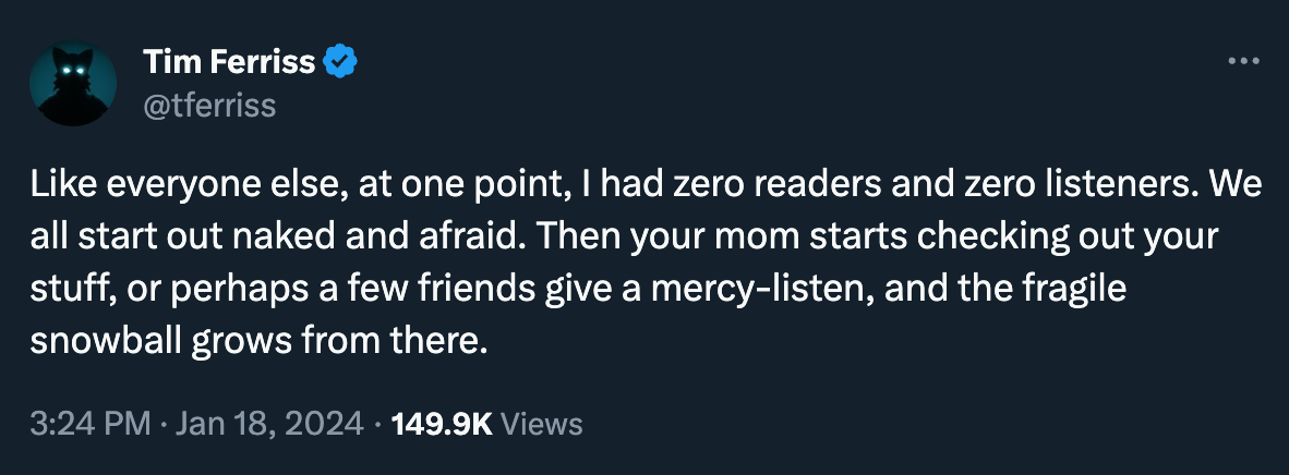 I was encouraged by this tweet just this morning that reminded me that we all start at “zero” and that the only thing that’s stopping us, more often than not, is ourselves:
