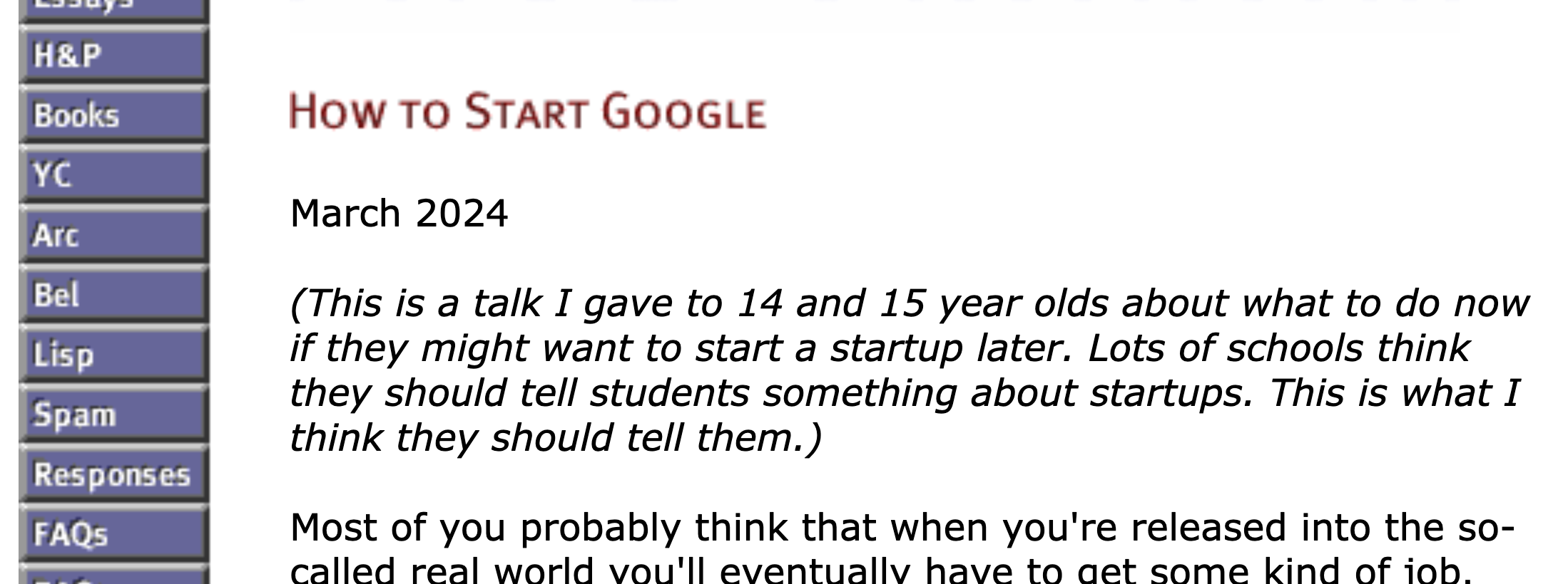 How do you get from where you are now to the point where you can start a successful startup? You need three things. You need to be good at some kind of technology, you need an idea for what you're going to build, and you need cofounders to start the company with.