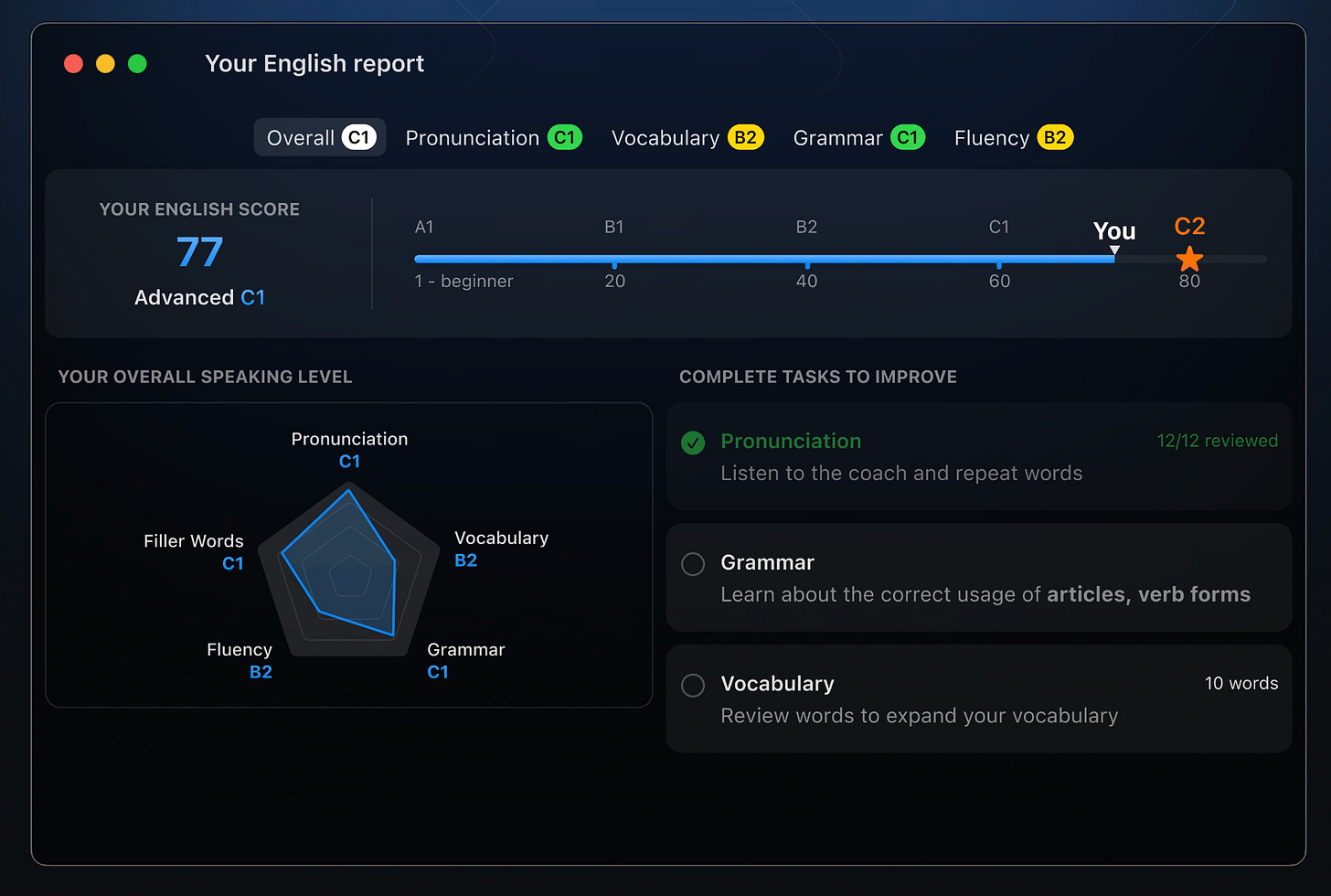 Learn english better! Fluently is a language coach providing instant feedback on calls to enhance pronunciation, grammar, and vocabulary.