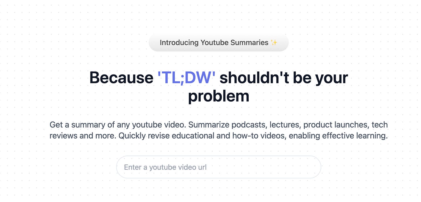 YouTube summaries! I don’t like how I have to create an account but the results aren’t terrible and you can copy and paste the results with or without timestamps. Not bad.