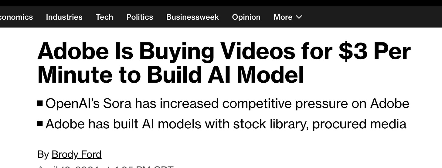 Adobe is paying $3 per minute for video submissions to train it’s AI text-to-video generator in an effort to catch up to OpenAI’s Sora. Getting paid to train is not something I’m interested in but perhaps it might be fun to try?