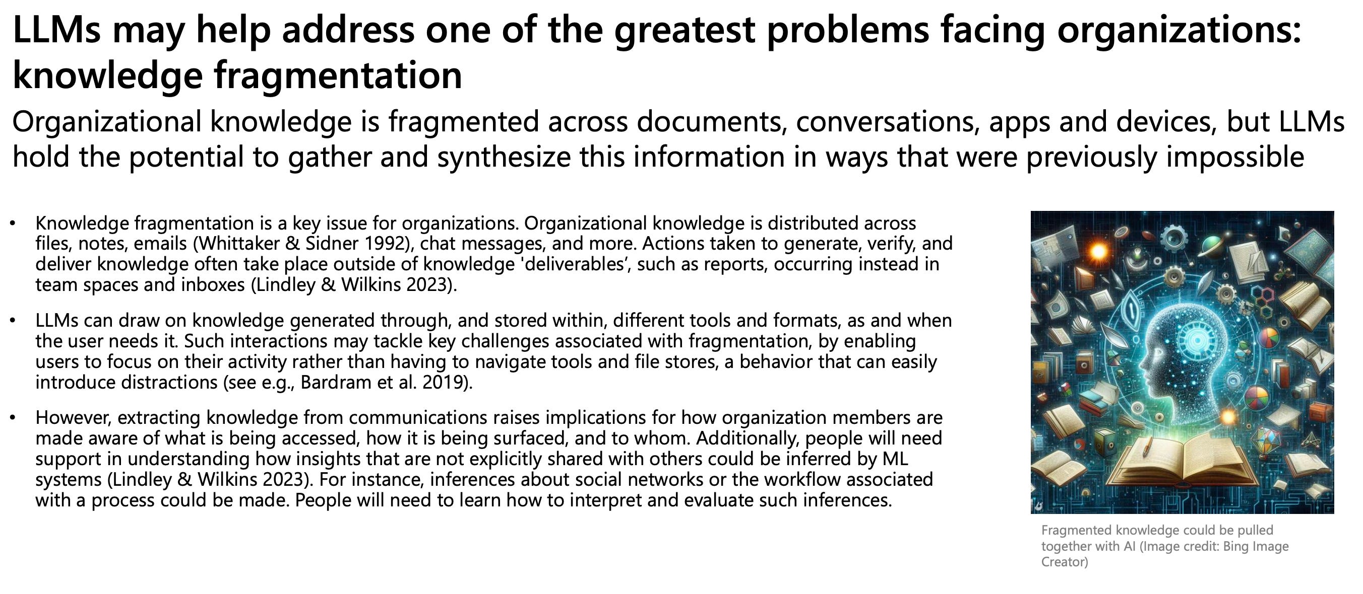 Now I’ve worked in large and small companies and there is an unbelievable amount of repeated effort when it comes to socializing important data but there aren’t very many tools that do this effectively. Leadership knows this but oftentimes aren’t willing or able to do it, beyond just time and resources. LLM’s can solve a lot of this pain and maximize staff productivity as a consequence.