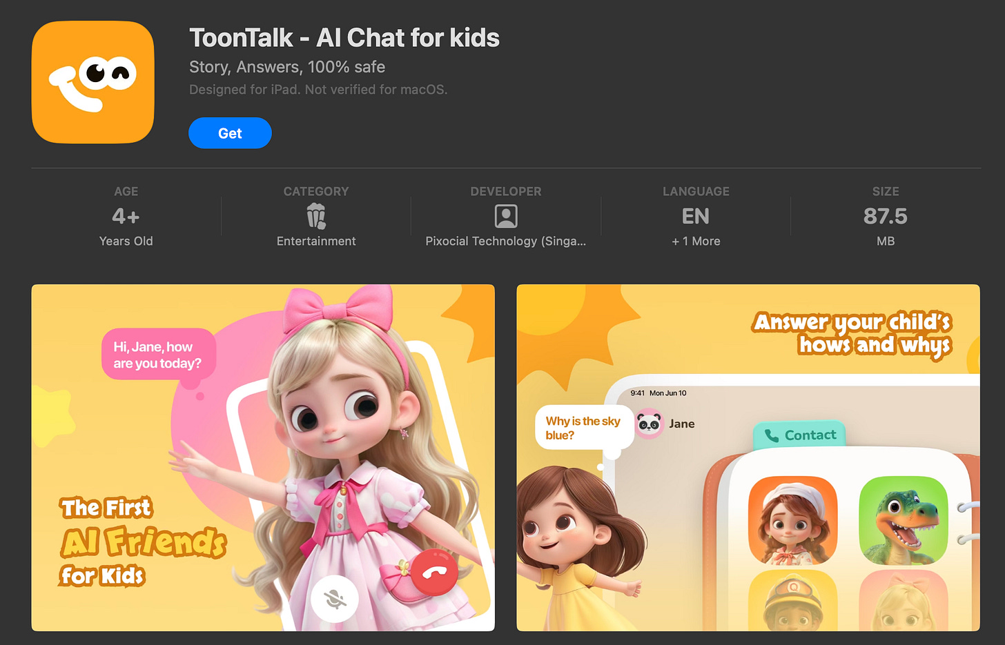 ToonTalk is a macOS app that is “friendly” for children. I have so many questions but most of them are obvious, like privacy, security, and content.