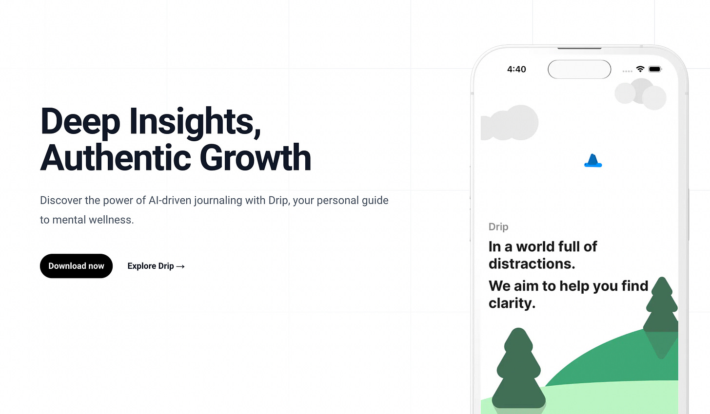 Drip is an AI-powered self-reflection and journaling tool. Explore your inner thoughts and feelings, transforming them into actionable steps for personal growth.