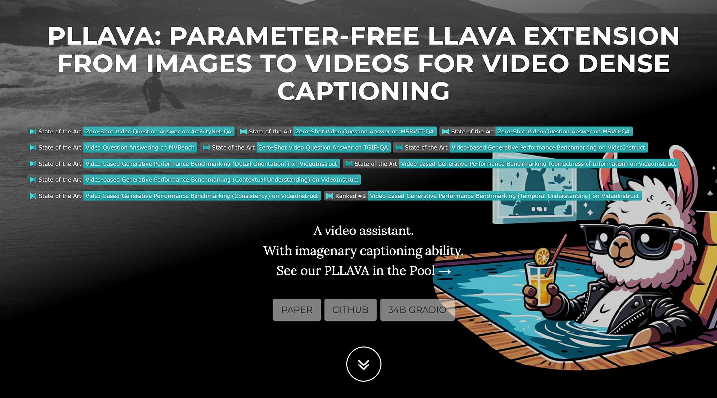 Pretty neat new model for images to video: PLLaVA. Cool overview: