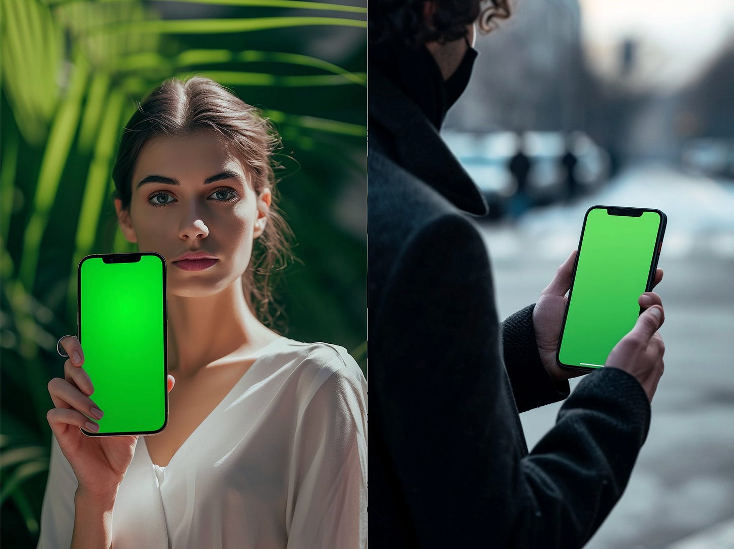 Over the shoulder shot of a person holding an iPhone with a completely <color> screenThen customize as-needed. Export when you’re done and then insert your product image where it needs to be.