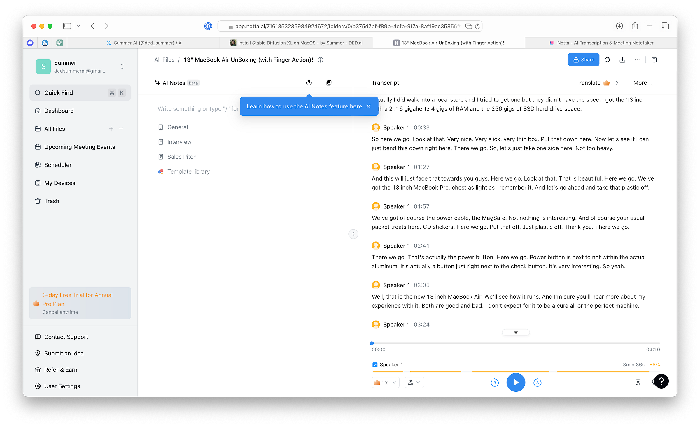 Transcription service using generative AI are fast-becoming a commodity as the technology has been around for a while and the (business) use cases are obvious. But, finding a good user experience in a non-confusing user interface is still the hill to climb and Notta didn’t offend me too badly.