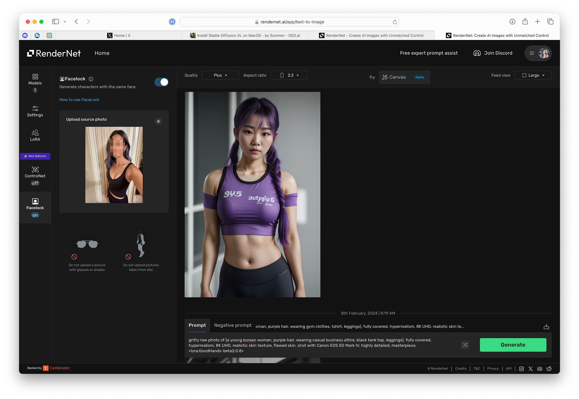 Some of the more interesting and useful tools available are ControlNet and Facelock, the latter which allows you to tell the tool to “lock” in on the face giving you more control on the face output and the former for control of the body.