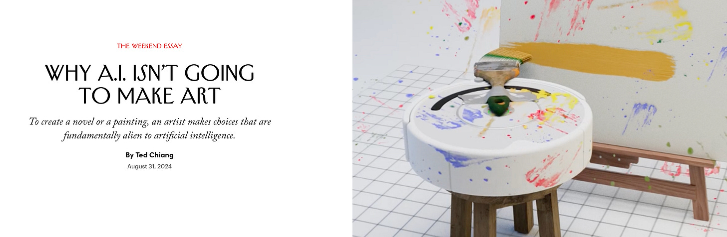 And the New Yorker thinks AI isn’t going to make art. And I find that laughable, at first blush. But whatever Ted.