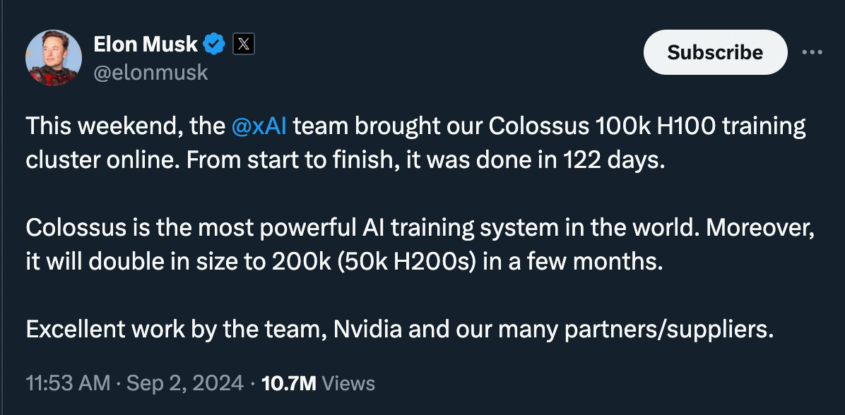 Elon is releasing the Colossus, thanks to NVIDIA.