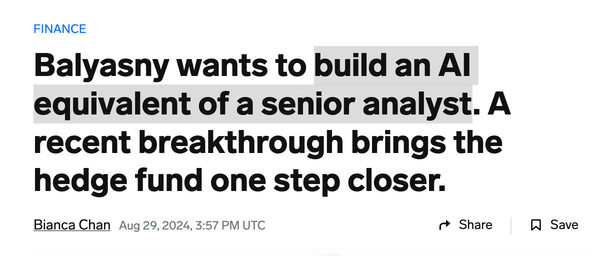 Folks are wanting to build an equivalent of a senior analyst for hedge funds.