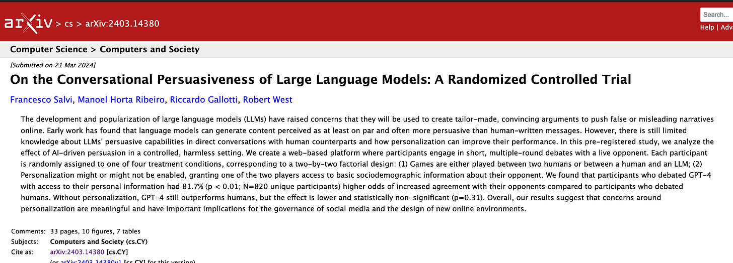 A new paper released suggests that people like you and me are more likely to be persuaded in fact-to-face debates by LLMs versus humans. That’s saying something and, if true, could mean quite a bit for not only how we consume information but what we choose to actually believe. And the use is going up with more folks trying it every single month. But, can we trust it?