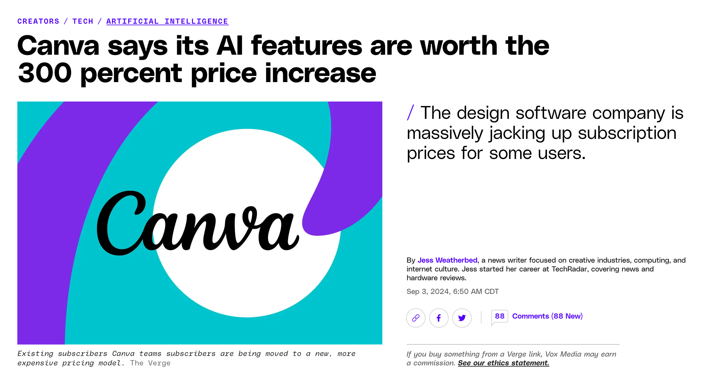 Canva is justifying it’s 300% increase of price via AI. Okay.